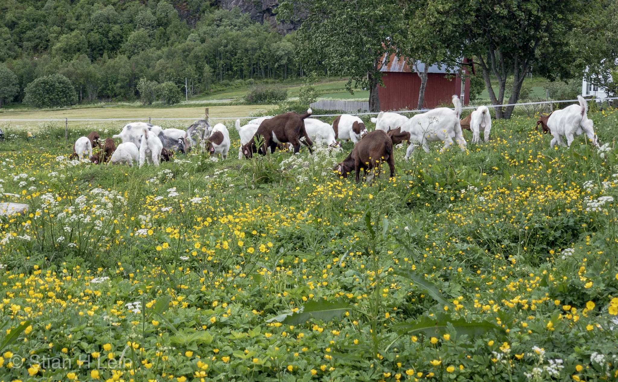 2 store fine beiter er ferdig til geitene, og ett er ferdig til hestene. Bukkekjeene er avvent og har fått et stort og frodig beite for sommeren. Vi var spent på hvordan avvenningen ville gå, og valgte å ha de under oppsyn på et mindre beite ved fjøset de første dagene. Det gikk strålende; fred og harmoni fra første dag.